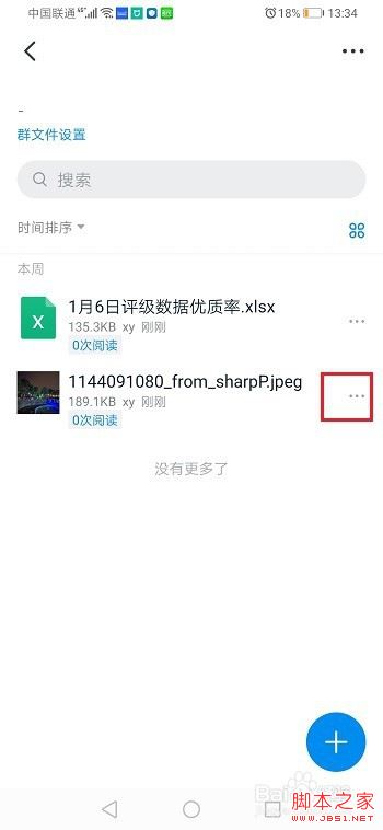 第二步进去群文件界面之后,选择要删除的文件,点击三点图标,如下图所示:
