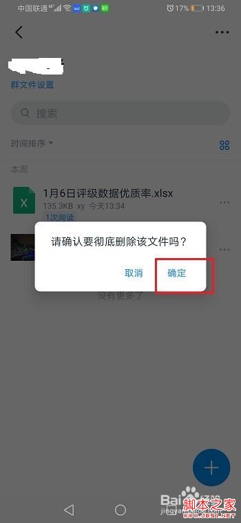 第四步弹出框之后,点击确定,进行删除群文件,如下图所示: