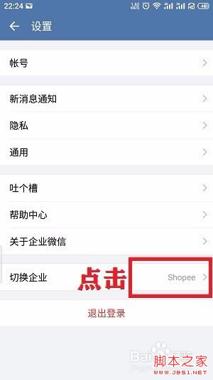 在设置页面,点击“切换企业”;