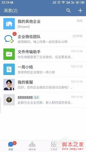 点击确定后会自动返回企业微信首页,切换成功。