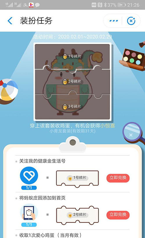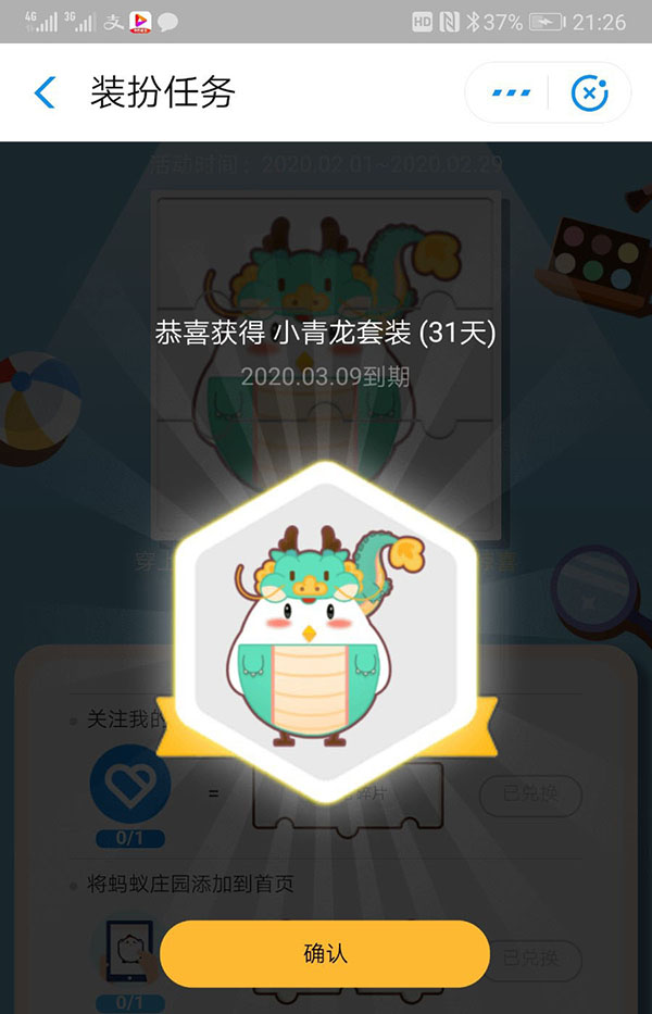 以上就是支付宝蚂蚁庄园小鸡穿小青龙装扮的教程,希望大家喜欢,请继续关注脚本之家。
