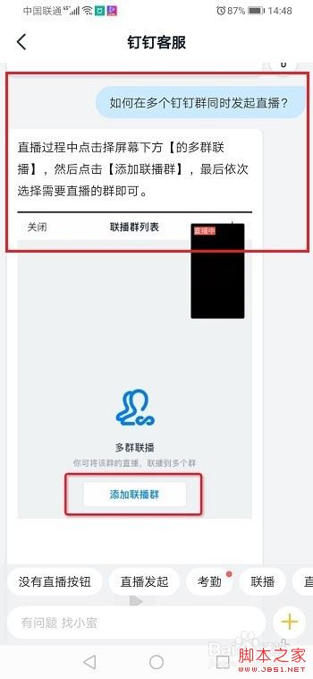 第五步进去之后,点击添加联播群,这样就可以实现多个钉钉群同时发起直播了,如下图所示: