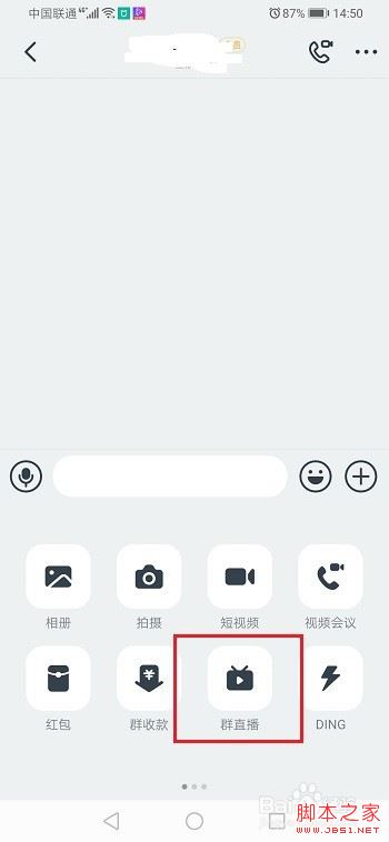 第二步打开钉钉,选择一个群聊,点击群直播,如下图所示: