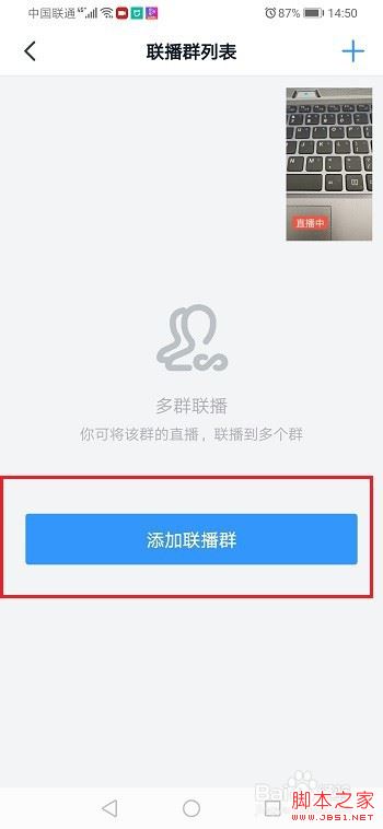 第四步进去直播界面之后,点击联播群图标,如下图所示: