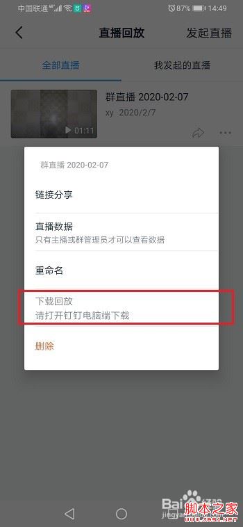 第二步如果我们想永久保存直播视频的话,可以下载直播视频,或者把直播视频保存到钉盘,如下图所示: