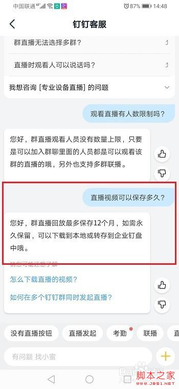 第一步我们首先需要知道钉钉直播视频最多可以保存一年,如下图所示: