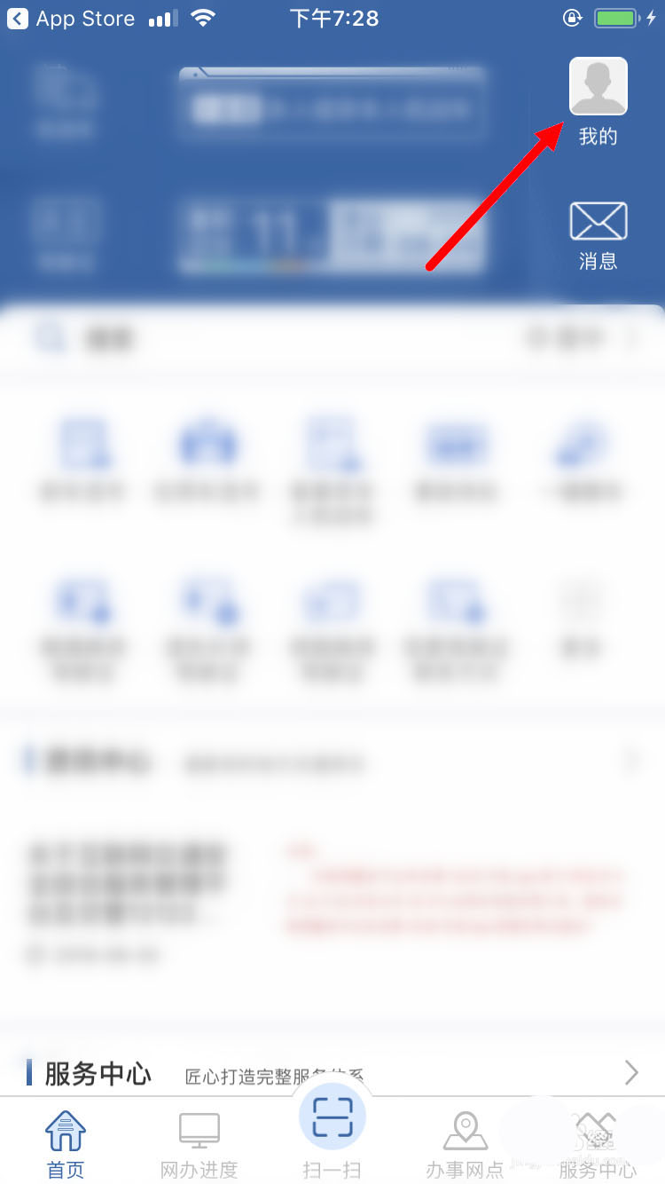 1、首先在手机上打开交管12123App,并在首页面点击右上角的【我的】。