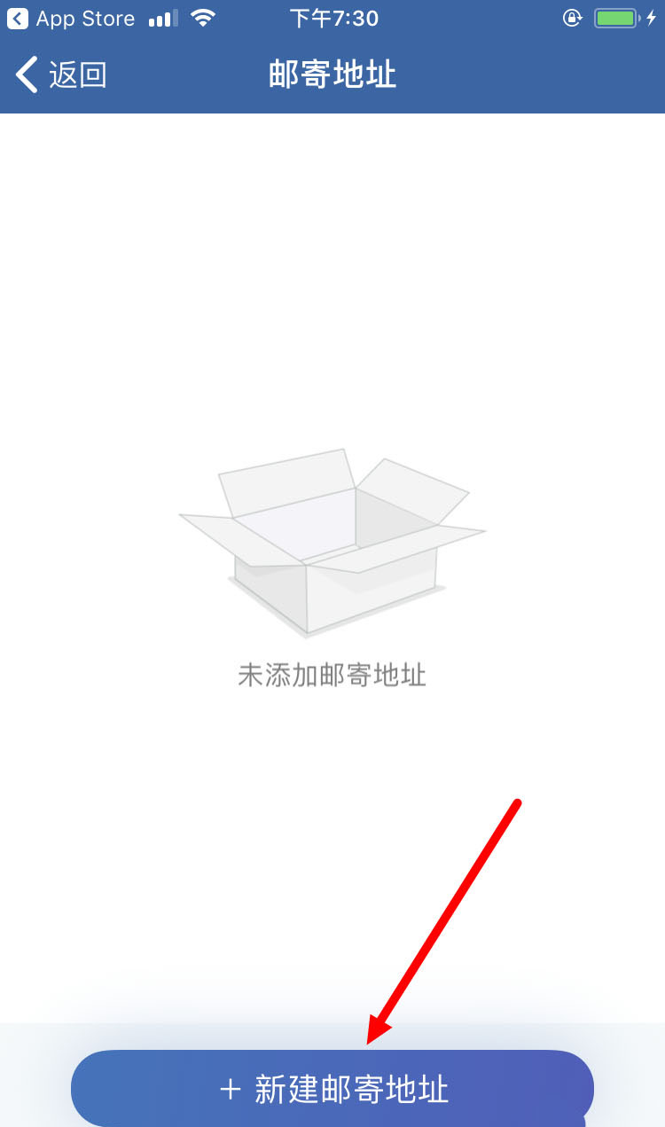 3、再在【邮寄地址】的页面里,点击【新建邮寄地址】。