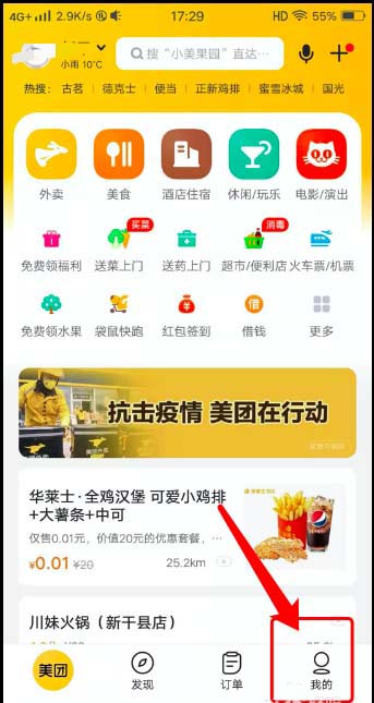 1、打开手机上安装的美团APP。