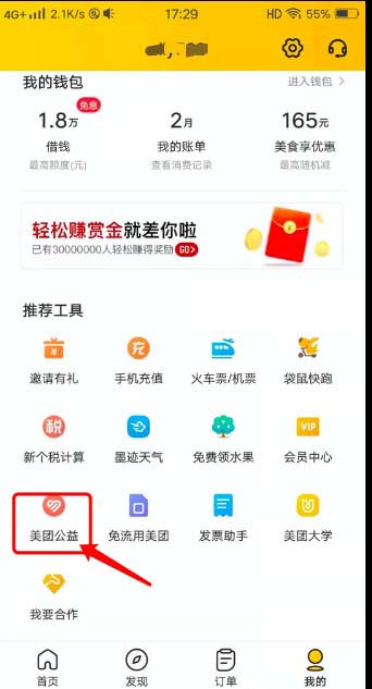 3、找到中间的“美团公益”,点击打开。
