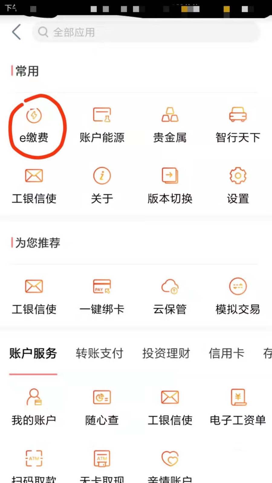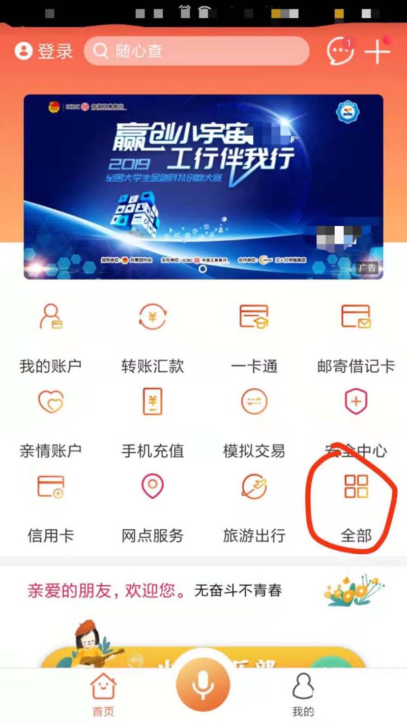 1、打开工商银行手机客户端,然后选择全部