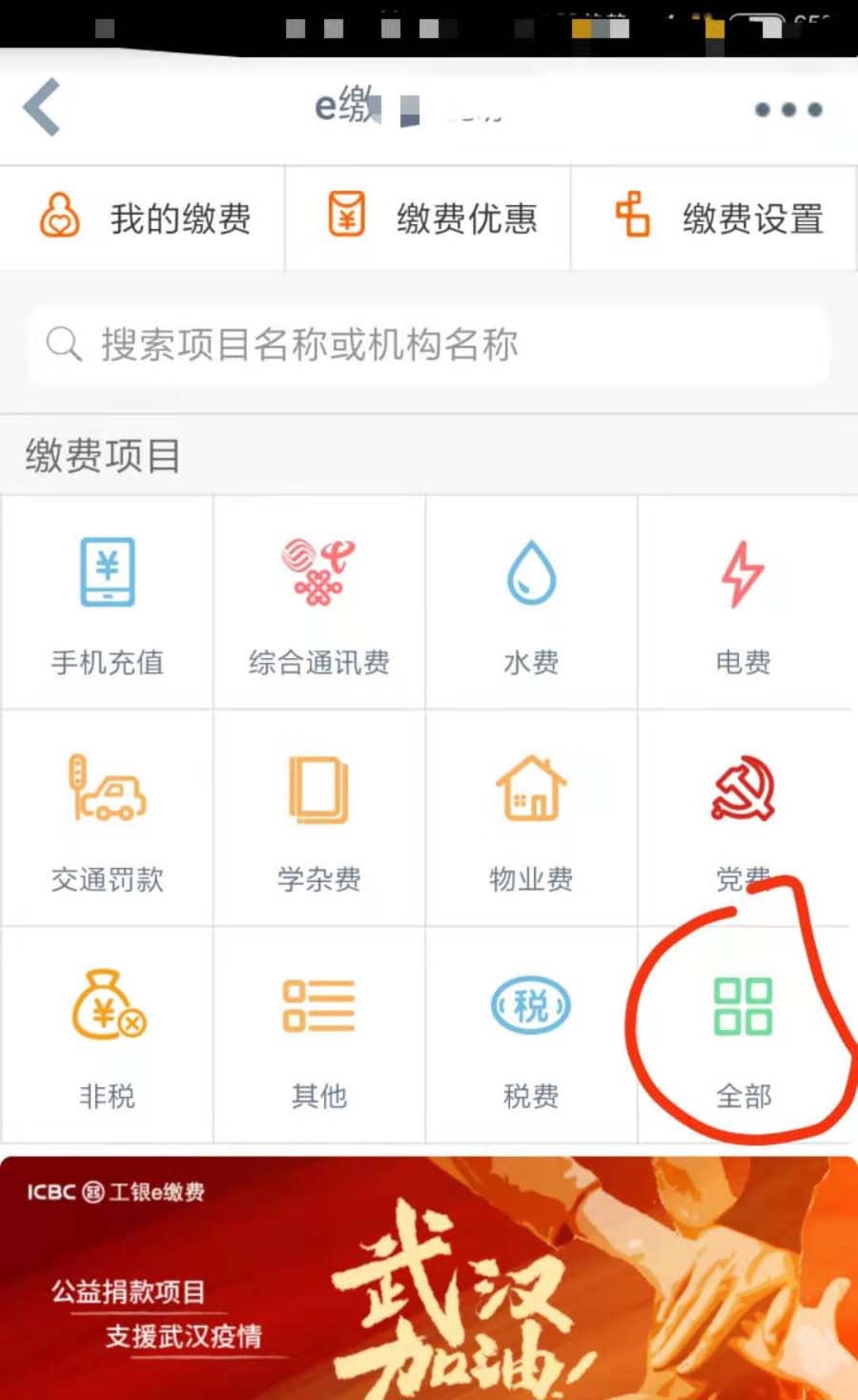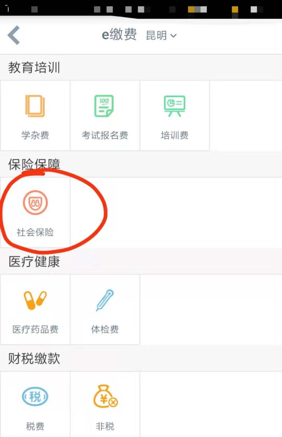 2、然后选择e缴费