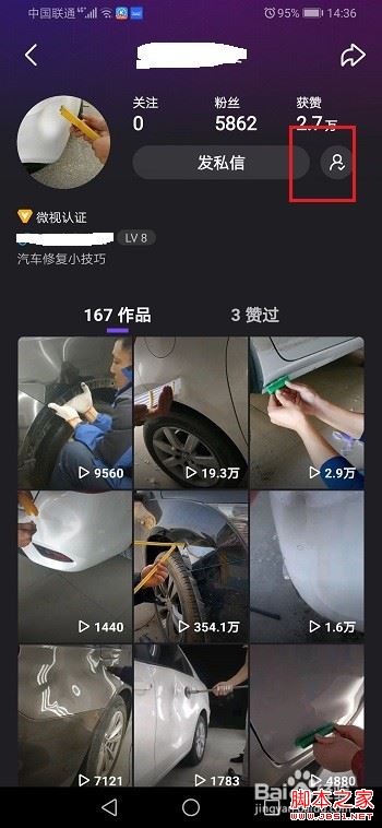 第三步进去对方主页之后,点击关注图标,如下图所示: