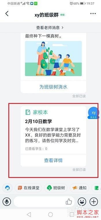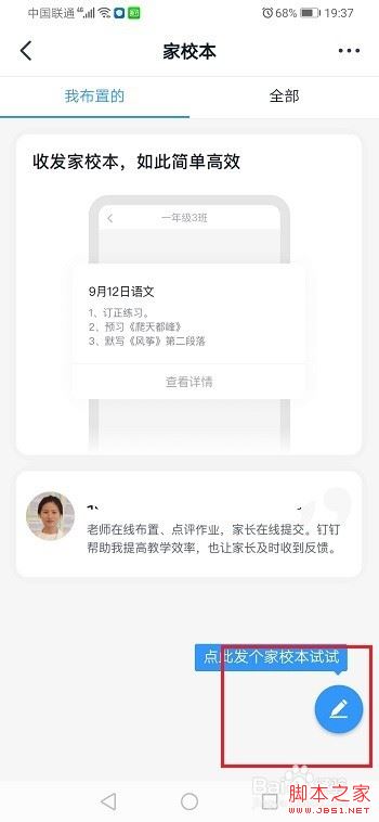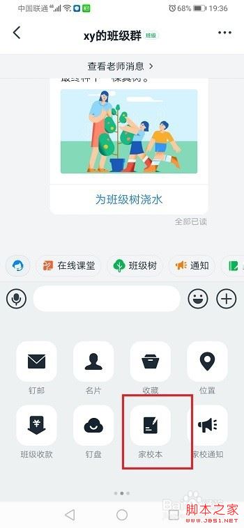 第一步我们首先需要知道钉钉的家校本主要是用来布置作业,点评作业的,是钉钉班级群特有的功能,如下图所示: