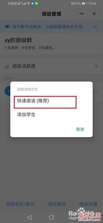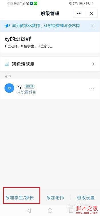 第二步进去班级管理之后,点击添加学生/家长,如下图所示: