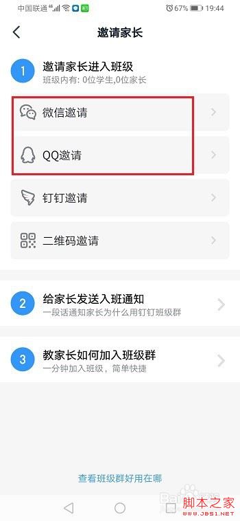 第四步可以选择qq和微信邀请家长,直接可以放在家长群里面,这样可以快速邀请家长入群,如下图所示: