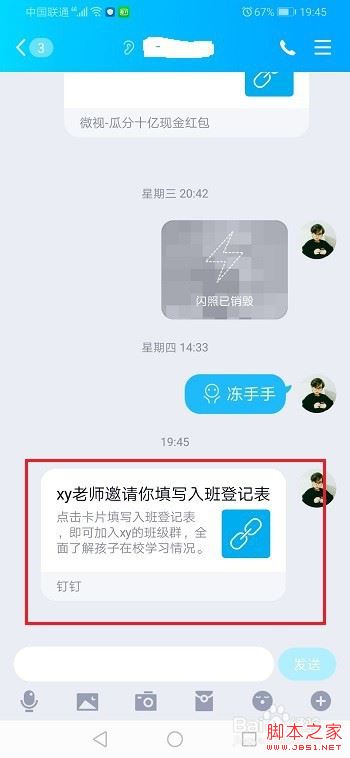 第五步发送给家长之后,家长填写好信息,打开钉钉,就成功加入班级群了,如下图所示: