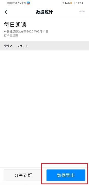 4、进去打卡成果界面之后,点击数据导出,如下图所示: