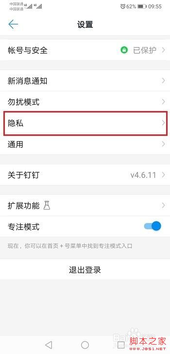 第三步进去钉钉设置界面之后,点击隐私,如下图所示: