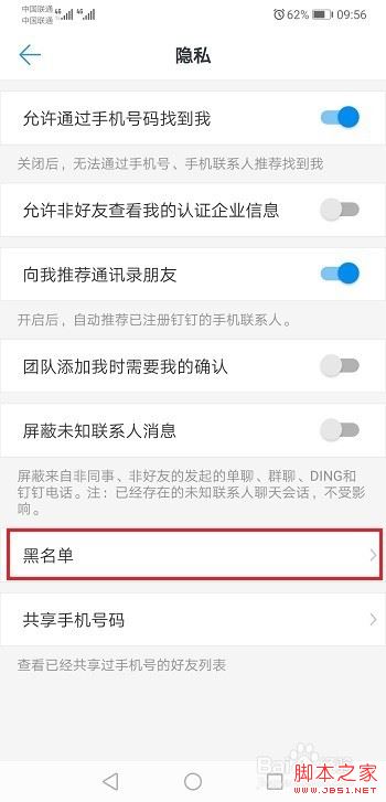 第三步进去钉钉隐私设置界面之后,点击黑名单,如下图所示: