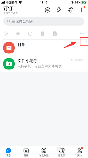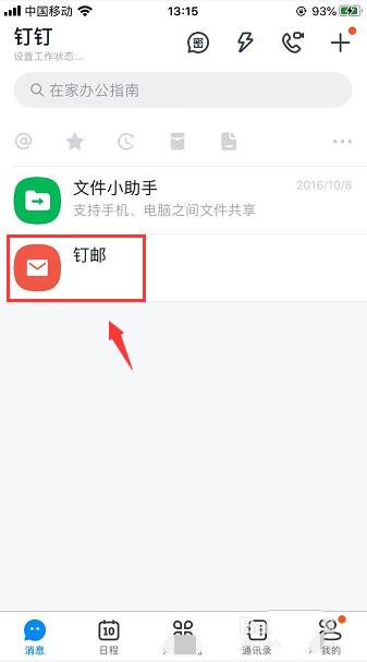1.打开手机钉钉消息页面,点开钉邮