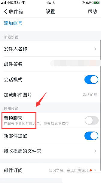 3、在设置页面里就可以看到置顶聊天,如下图
