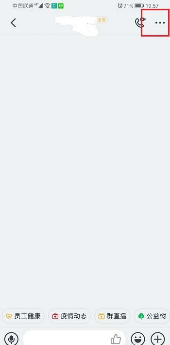 1、手机上打开钉钉,进去群聊,点击三点图标,如下图所示: