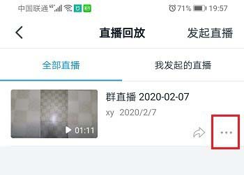 3、进去直播回放之后,选择要查看的直播视频,点击旁边的三点图标,如下图所示: