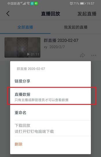 4、点击三点图标之后,选择直播数据,如下图所示: