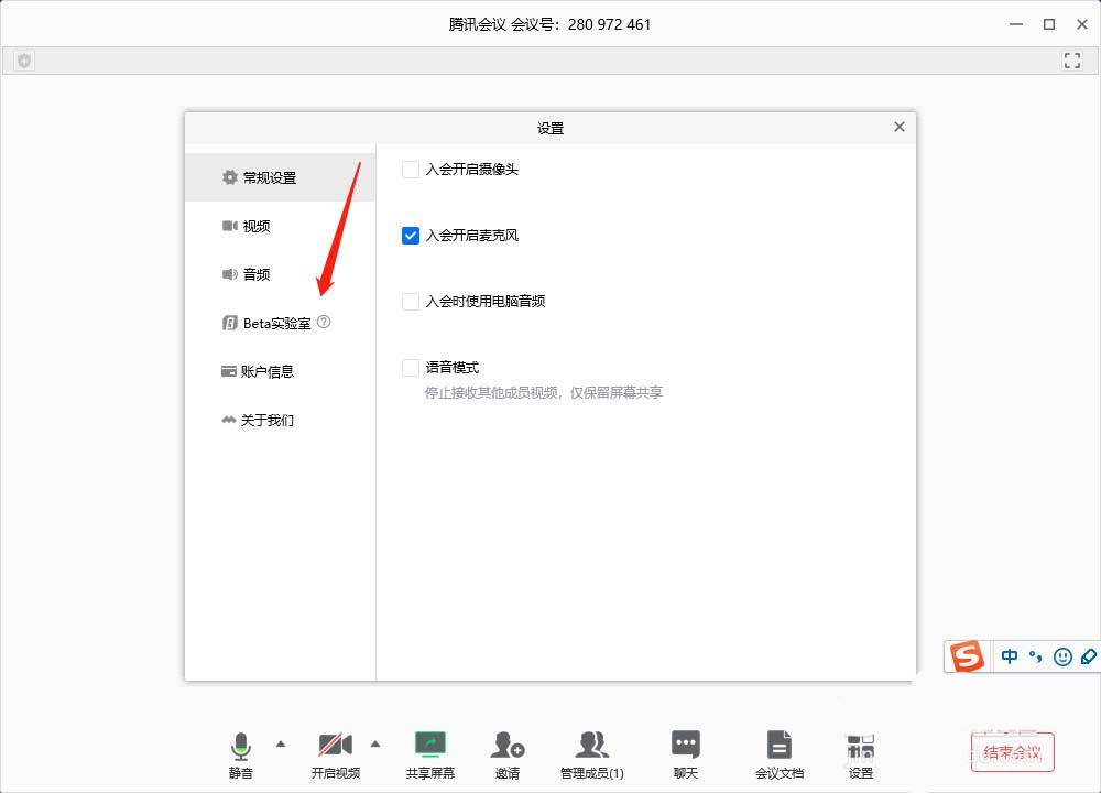 5、我以电脑版的客户端为例子继续讲解,在设置界面,点击beta实验室这里。