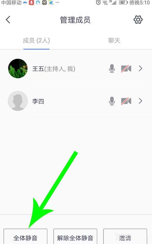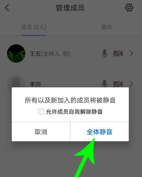 2、打开管理成员界面,然后点击“全体静音”。