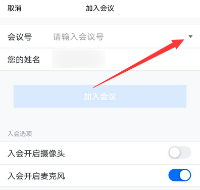 5、点击右面的小三角可以查看使用过的会议号。
