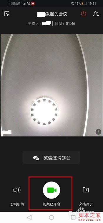 第五步点击中间的视频已开启,就成功关闭了视频会议的摄像头,如下图所示: