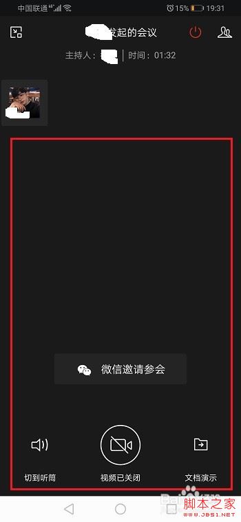 第四步进去视频会议界面之后,可以看到摄像头是开启的,如下图所示: