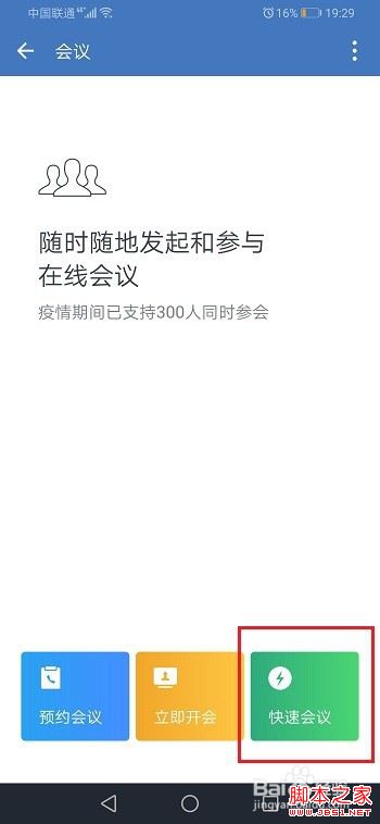 第二步进去会议之后,点击快速会议,选择视频会议,如下图所示: