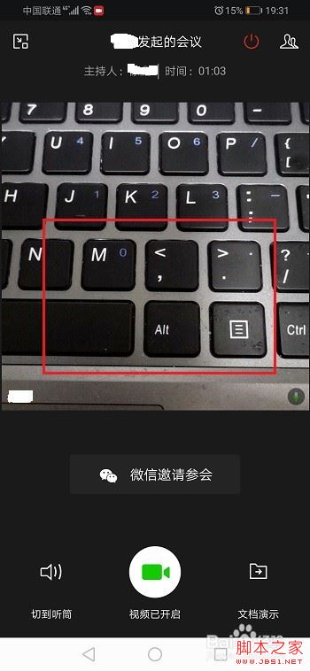 第三步进去视频会议界面之后,点击中间的视频拍摄区域,如下图所示: