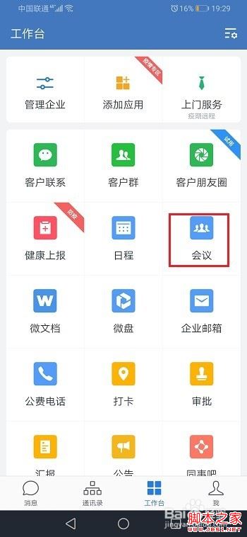 第一步打开企业微信,进去控制台之后,点击会议,如下图所示: