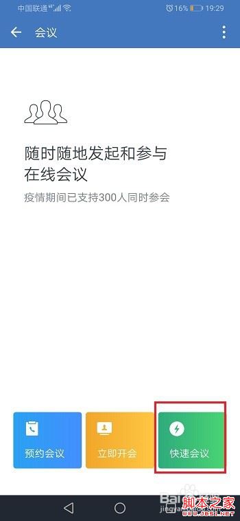 第二步进去会议界面之后,点击快速会议,如下图所示: