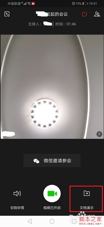 第三步进去视频会议界面之后,点击文档演示,如下图所示: