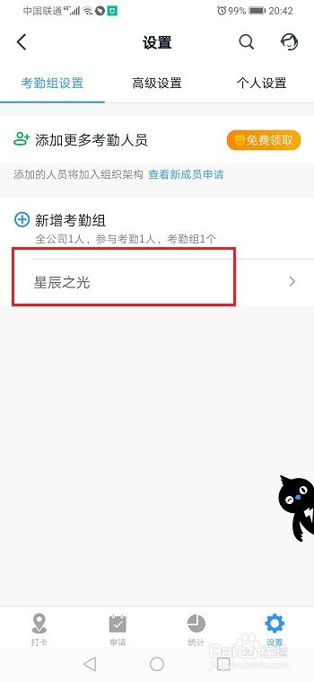 第三步进去之后,选择对应的考勤组,如下图所示: