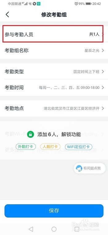第四步进去修改考勤组界面之后,点击参与考勤人员,如下图所示: