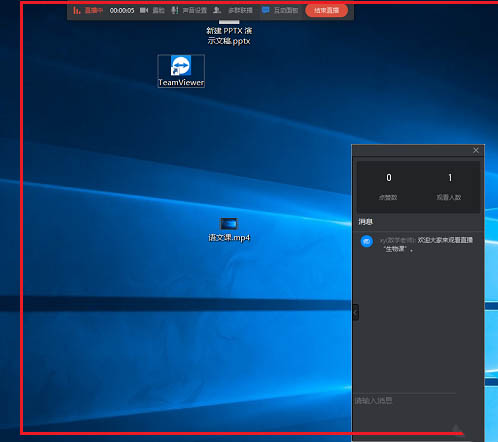 5、点击开始值班,就可以进行直播,这里是屏幕分享模式,适合上课,培训,也可以露脸,如下图所示: