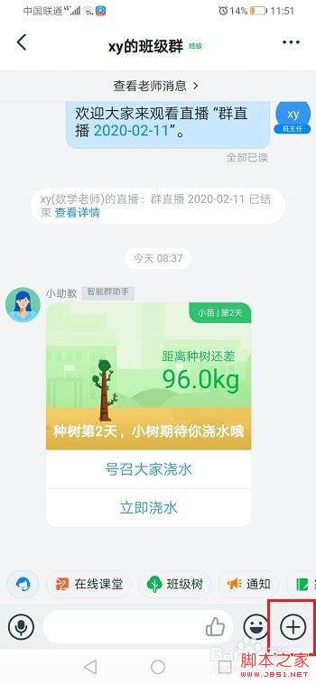 第一步手机上打开钉钉,进去群聊之后,点击+号图标,如下图所示: