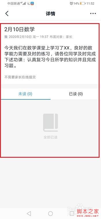 第三步进去家校本之后,可以看到布置的作业,如下图所示: