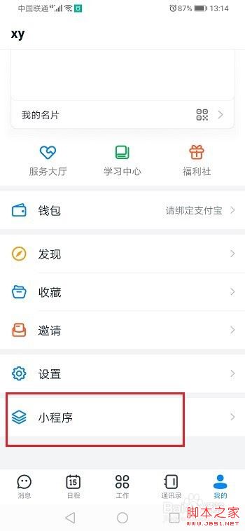 第一步手机上打开钉钉,进去我的界面,点击小程序,如下图所示: