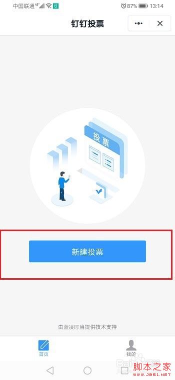 第二步进去之后,点击钉钉投票,选择新建投票,如下图所示: