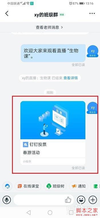 第五步分享到钉钉群里面之后,群内成员就可以进行投票了,如下图所示: