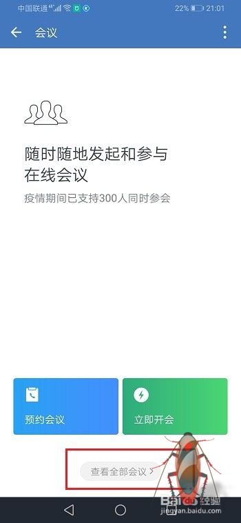 第二步进去会议之后,点击下方的查看全部会议,如下图所示: