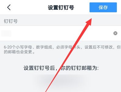 6、在这个界面设置自己的钉钉号,点击保存即可。设置后不可修改,所以要认真设置。