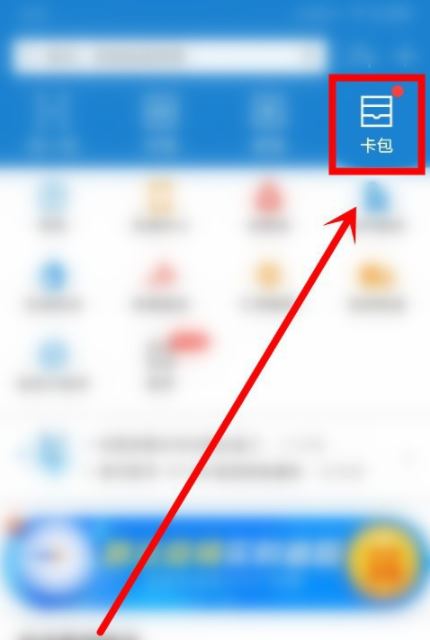 进入到软件首界面中之后,在该页面的右上方位置我们找到卡包这个选项,点击进入。